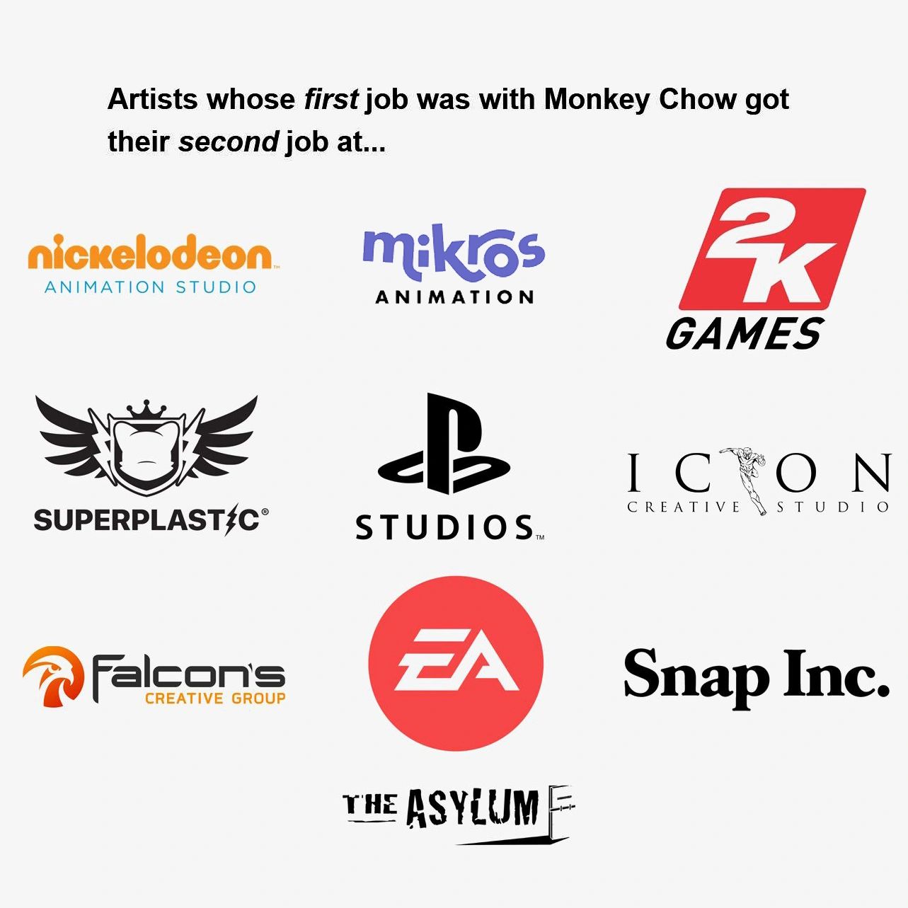 Monkey Chow prides itself on working with new artists who are right out of school or are self-taught. We are a great place to get the experience you need to launch your career, or stick around and grow with us! We have an exciting slate of projects coming your way.
